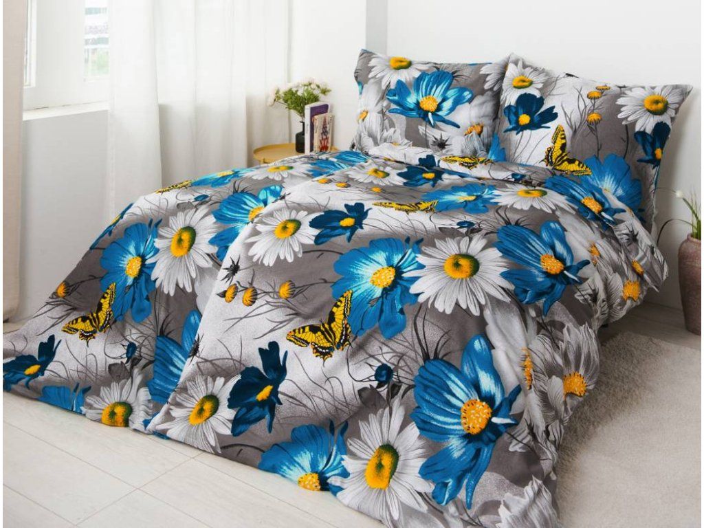 Bavlněné povlečení na dvě lůžka KARLA - modré/šedé