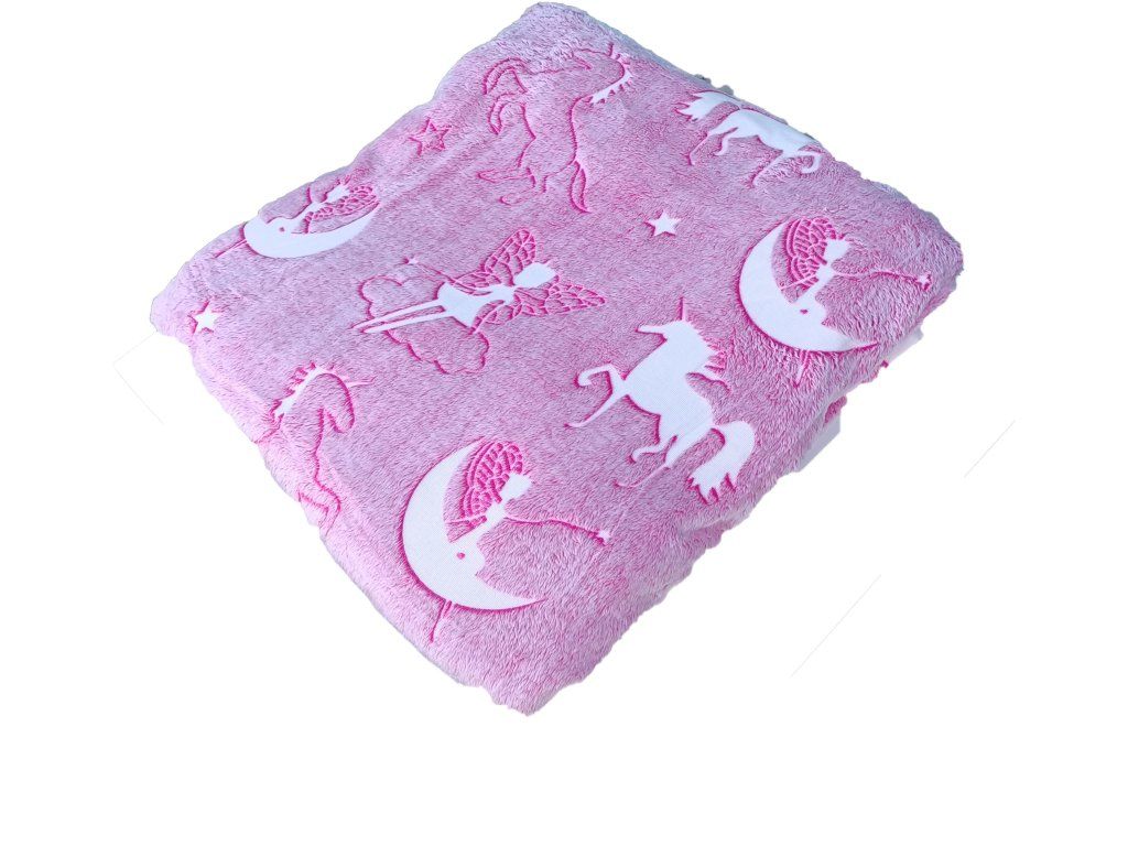Kouzelná deka která září ve tmě. Deka svíticí .Heboučká deka z mikrovlákna. Deka je vyrobena speciální metodou, při které je do vzoru přidáno fluorescenční vlákno, které po nasvícení svítí. Deka je snadná na údržbu, protože nepouští vlákna, nežmolkovatí a rychle schne.
