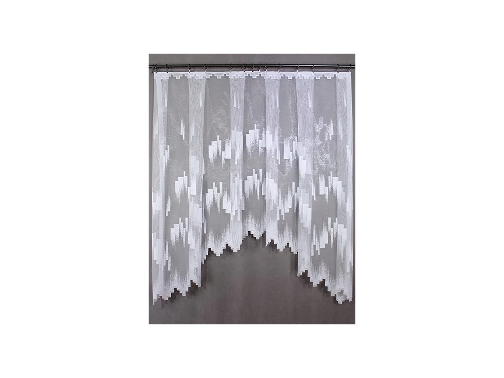 Hotová oblouková záclona BARBARA. Záclona má pevné okraje a zesílený horní lem určený pro zavěšení na klasické žabky.