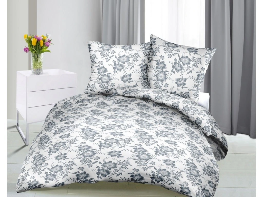 Krepové povlečení Romance bílo šedá140x200