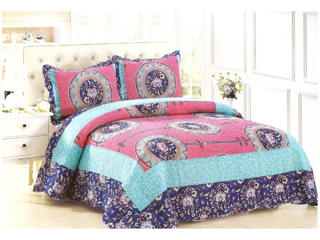 Přehoz na postel - dvoulůžko je praktický a moderní přehoz přes postel, zútulní váš interiér a zpříjemní vaše bydlení. Přehoz vždy je oboustranný. V detajléch jsou vyfocené obě strany přehozu Povlaky jsou součástí balení. Rozměr na přehoz 230 x 250cm a 2 x 50x70cm dva povlaky na polštář Složení: 100% bavlna praní na 30°C Přehozy vhodné přes postele, na lůžka i na sedací soupravy.
