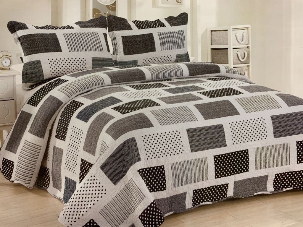 Přehoz na postel - dvoulůžko je praktický a moderní přehoz přes postel, zútulní váš interiér a zpříjemní vaše bydlení. Přehoz vždy je oboustranný. V detajléch jsou vyfocené obě strany přehozu Povlaky jsou součástí balení. Rozměr na přehoz 230 x 250cm a 2 x 50x70cm dva povlaky na polštář Složení: 100% bavlna praní na 30°C Přehozy vhodné přes postele, na lůžka i na sedací soupravy.