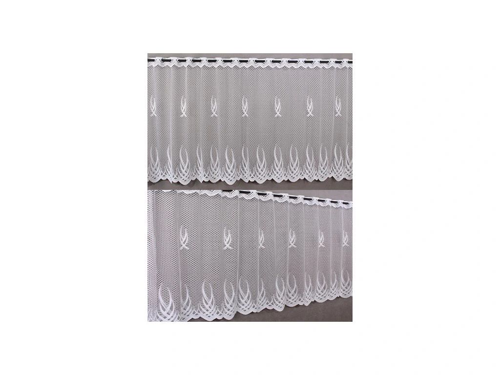 Záclona na hoře je opatřena otvory na provlečení vitrážové tyčky Prodává na metry podle šíře Vašeho okna. Optimální je koupit si jednou tolik, co je šíře prosklení plochy okna. Materiál: 100 % polyester. Prát na 40°C, neždímat. Cenu uvedeno za 1 běžný metr.