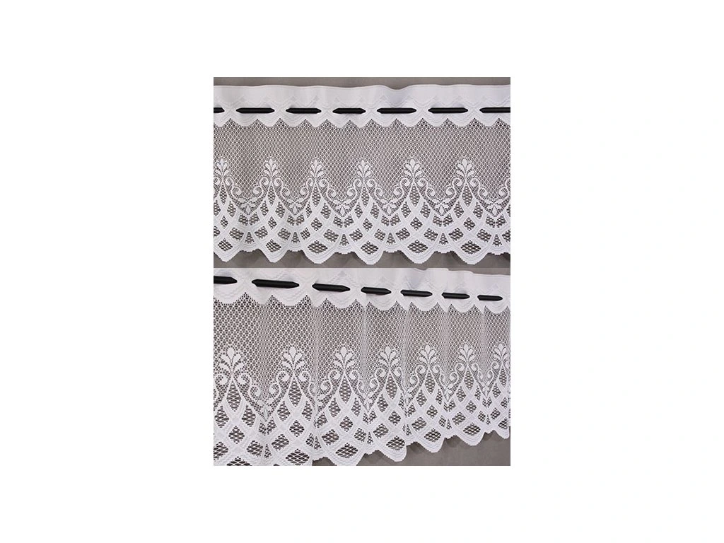 Záclona na hoře je opatřena otvory na provlečení vitrážové tyčky Prodává na metry podle šíře Vašeho okna. Optimální je koupit si jednou tolik, co je šíře prosklení plochy okna. Materiál: 100 % polyester. Prát na 40°C, neždímat. Cenu uvedeno za 1 běžný metr.